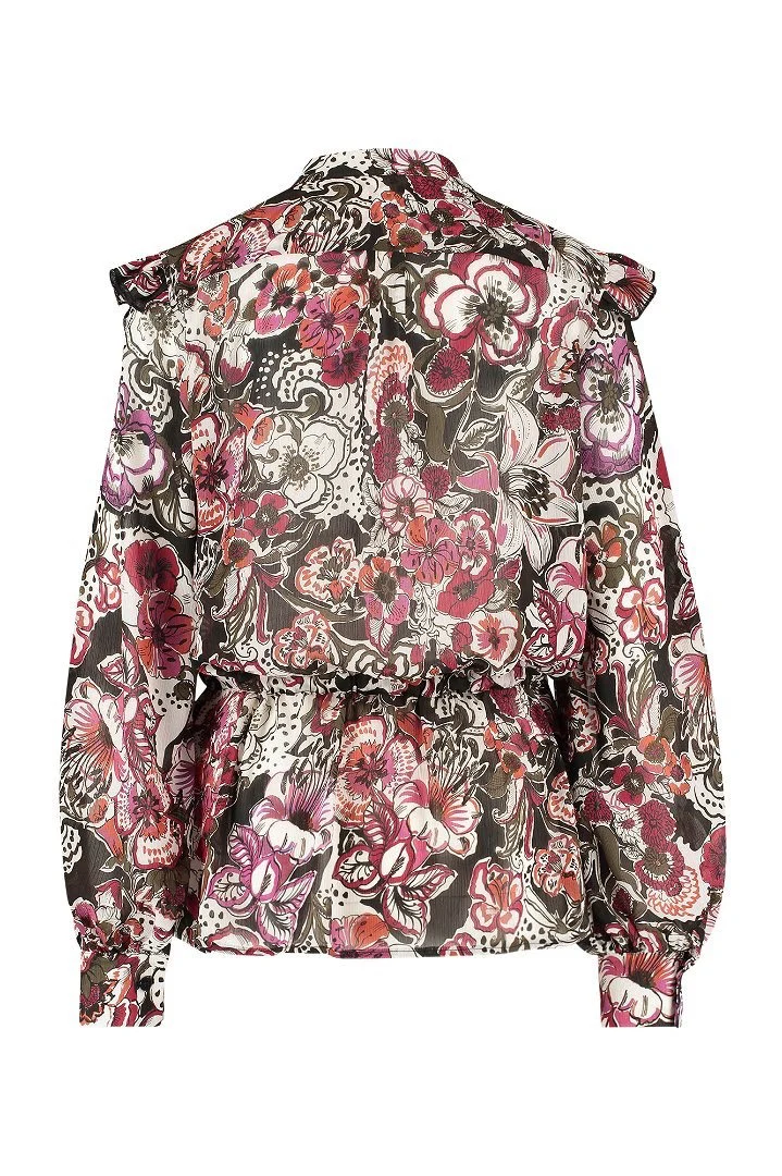 Deze prachtige ecru dessin blouse van Studio Anneloes is een must-have voor elke vrouwelijke garderobe. De blouse is perfect voor elke gelegenheid en kan zowel casual als zakelijk gedragen worden. De doorschijnende stof geeft de blouse een speelse en tegelijkertijd elegante uitstraling. De blouse heeft ruches over de schouders die zorgen voor een vrouwelijk en speels effect. De knoopsluiting en rijgkoord in de taille accentueren de taille op een subtiele manier en geven de blouse een flatterende pasvorm. De bloezende mouwen met manchetten voegen een vleugje glamour toe aan het geheel. Gemaakt van hoogwaardig materiaal (100% polyester), deze blouse is niet alleen comfortabel om te dragen, maar ook duurzaam. Shop deze prachtige blouse nu bij nummerzestien en maak jouw outfit compleet!