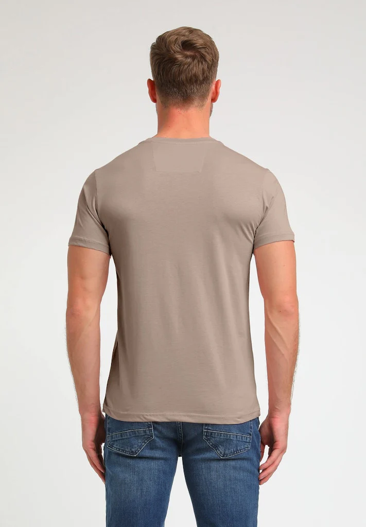 Deze stijlvolle taupe heren t-shirt van Gabbiano Men is een must-have voor elke man. Vervaardigd uit 100% katoen, biedt dit t-shirt ultiem comfort en een perfecte pasvorm. De zachte stof voelt prettig aan op de huid en is ademend, zodat je je de hele dag comfortabel voelt. Door de tijdloze kleur taupe is dit t-shirt gemakkelijk te combineren met verschillende outfits. Of je het nu draagt op een casual jeans of onder een blazer, met dit t-shirt zie je er altijd stijlvol uit. Bestel nu dit fantastische t-shirt en maak je kledingkast compleet!