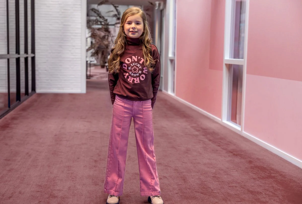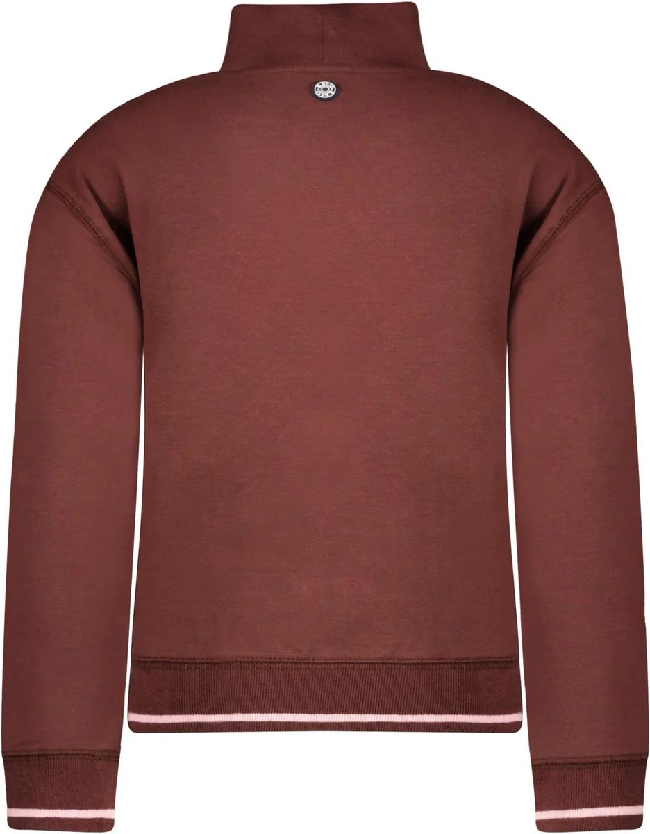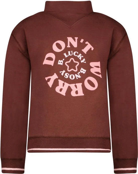 Deze trendy bruin gekleurde sweater meisjes van b.nosy is een absolute must-have voor de jonge fashionistas. De hoge kraag zorgt niet alleen voor een stijlvolle look, maar houdt ook nog eens heerlijk warm tijdens koude dagen. Het artwork op de voorkant geeft de sweater een speelse touch en zal zeker de aandacht trekken. De boorden van de mouwen en onderkant zijn ribgebreid en bevatten een zacht roze bies voor een extra girly touch.