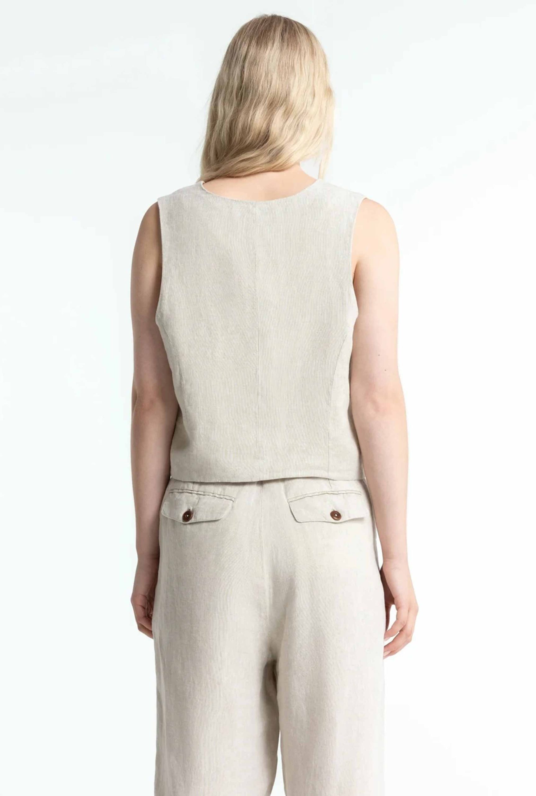 Dit linnen gilet van Kings of Indigo heeft precies die relaxte, tijdloze look waar je altijd op terugvalt. Mooi als set, maar ook los heel sterk.