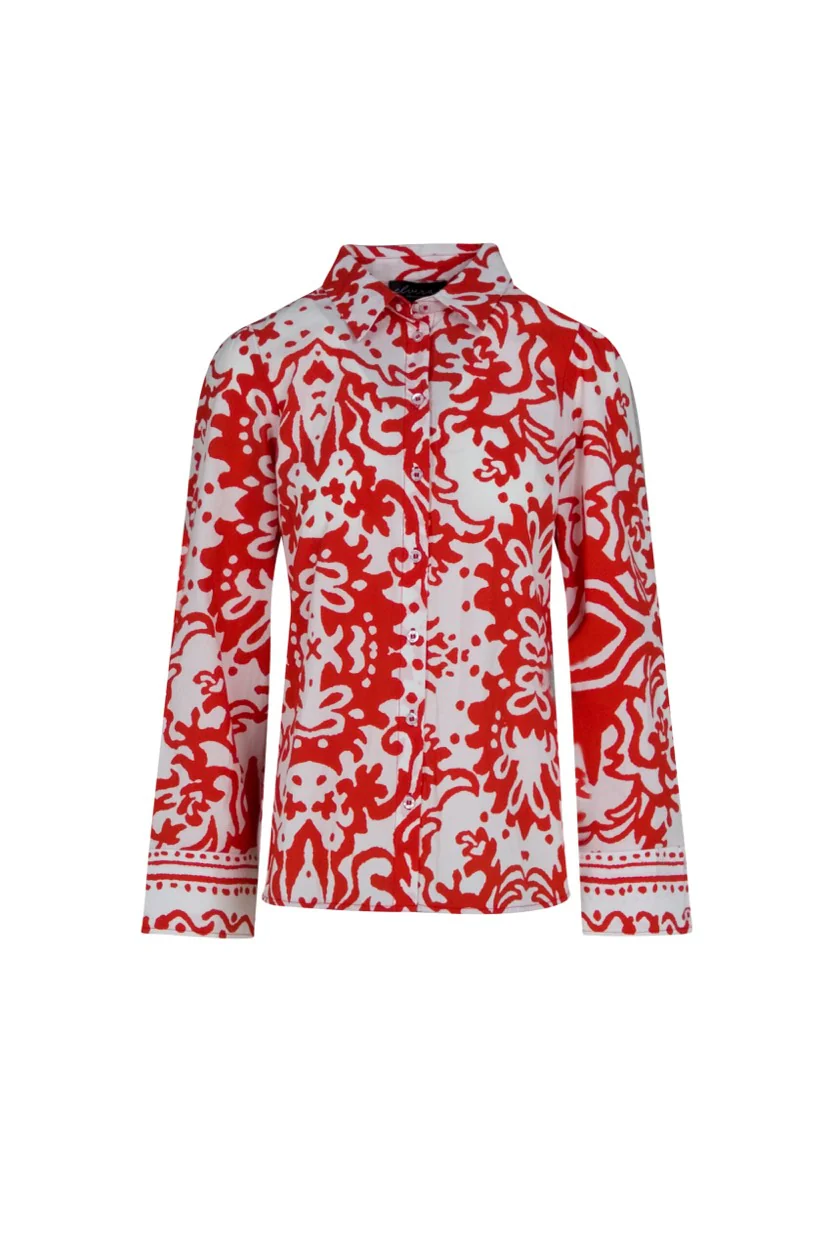 Deze rode dessin blouse van het bekende merk Elvira Casuals is een must-have item in de garderobe van elke vrouw. De blouse heeft lange mouwen en is gemaakt van 100% katoen, wat zorgt voor een comfortabele pasvorm en een hoogwaardige kwaliteit. De rode dessin print geeft de blouse een speelse en stijlvolle uitstraling, perfect voor elke gelegenheid. Combineer de blouse met een mooie jeans en hakken voor een zakelijke look, of draag hem met een rok en sneakers voor een casual outfit. Met deze blouse ben jij altijd on-trend en straal je zelfvertrouwen uit. Shop nu deze trendy blouse bij NummerZestien en geef je kledingkast een upgrade!