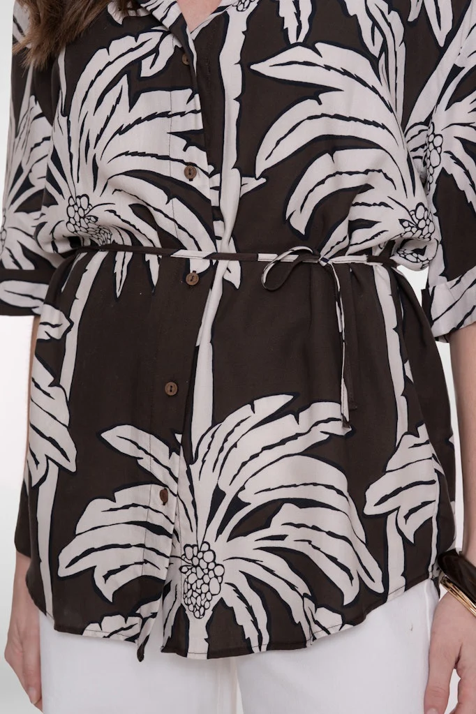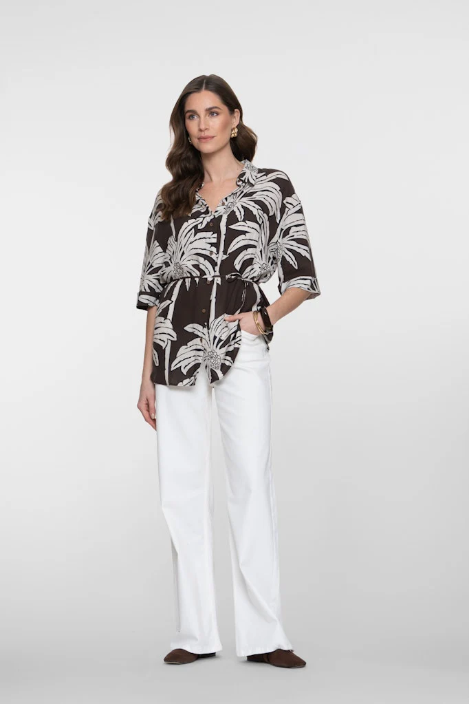 Deze prachtige blouse van Geisha dames is perfect voor elke trendy vrouw. Het dessin in warme bruine tinten geeft de blouse een speelse en tegelijkertijd elegante uitstraling. De blouse heeft korte mouwen en is geschikt voor elk seizoen. Het hoogwaardige materiaal, namelijk 100% tencel, zorgt voor een comfortabele pasvorm en een luxe uitstraling. De blouse heeft een klassieke kraag en een subtiele knoopsluiting aan de voorkant. Draag hem casual op een jeans of combineer hem met een rok voor een sophisticated look. Deze blouse is een must-have voor elke modieuze vrouw. Bestel hem nu bij onze kledingwebshop NummerZestien en maak jouw garderobe compleet!