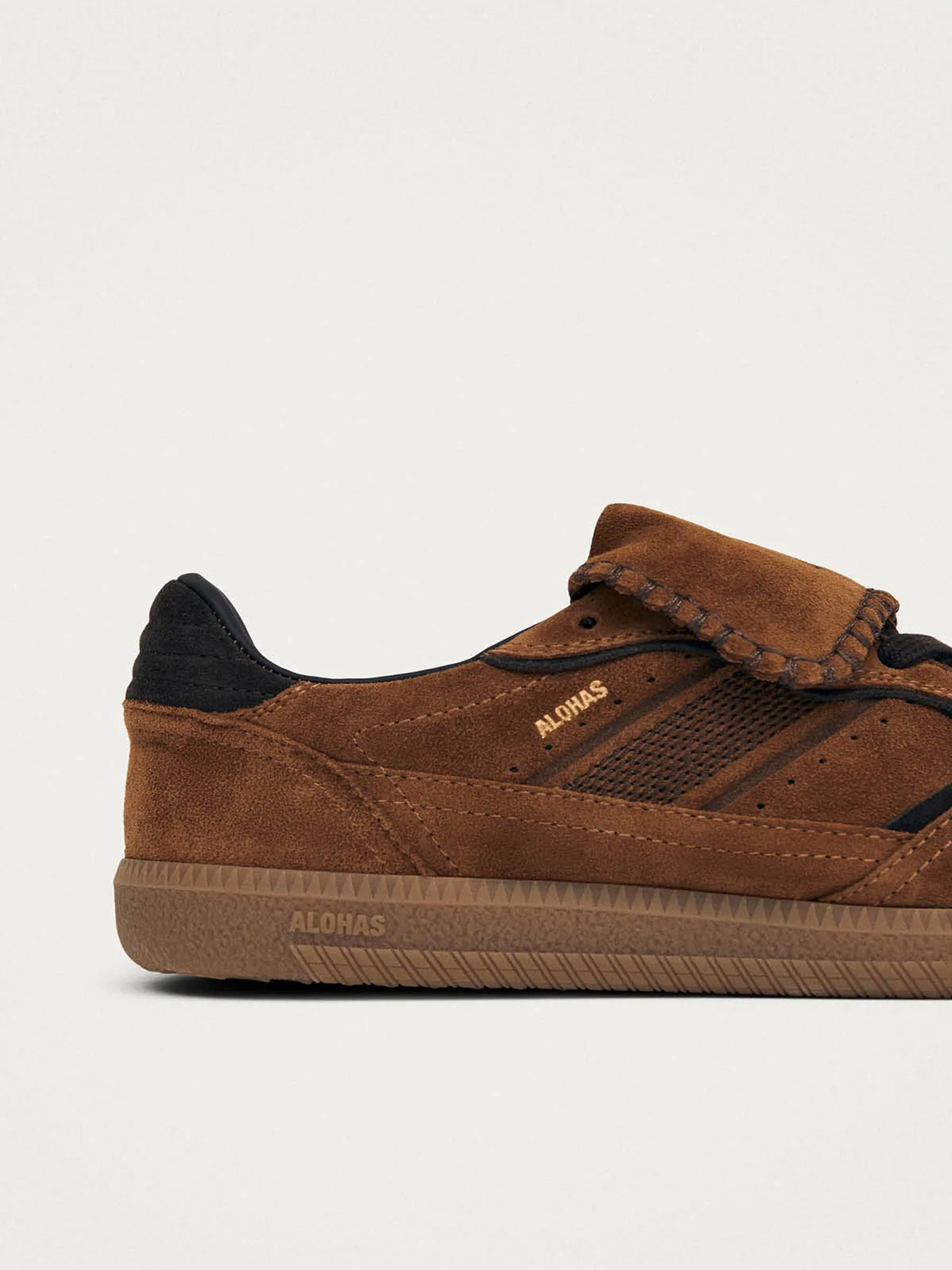 Ken je dat gevoel als een sneaker er direct goed uitziet bij álles wat je draagt? Dat is precies wat de bruine TB.490 Club van Alohas doet. Warm bruin suède, zwarte contrastdetails en die kenmerkende lange flap die over de wreef vouwt geven deze sneaker een stoere, retro voetbalschoen-vibe. Alohas produceert alleen op bestelling, ontworpen in Barcelona en gemaakt in duurzaam leer.