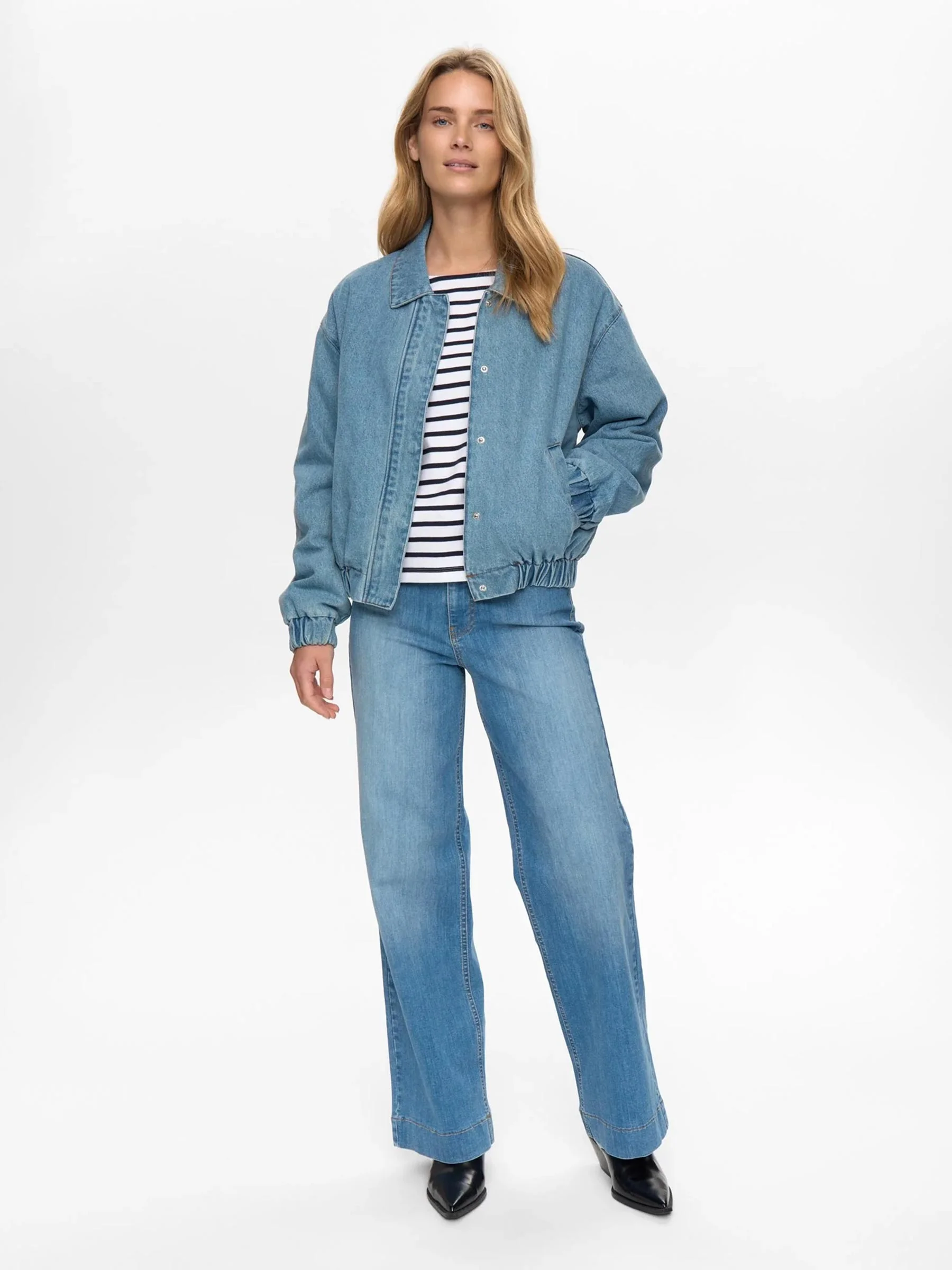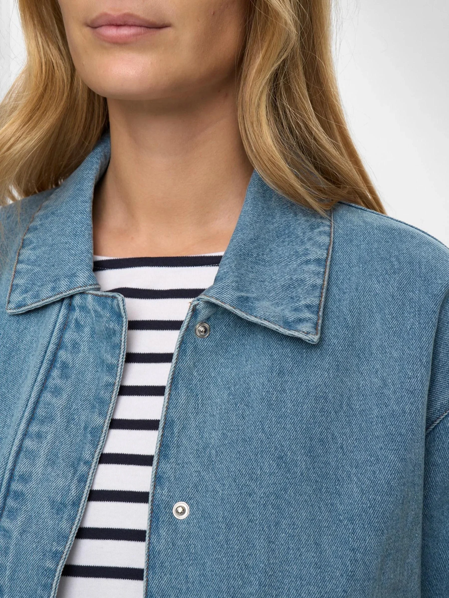 Deze blauwe denim jacket van Nümph is zo’n fijne die je er makkelijk bij pakt. Comfortabel, niet te zwaar en door de elastische details zit hij gewoon lekker. Draag over een streep of basic top en je bent klaar.