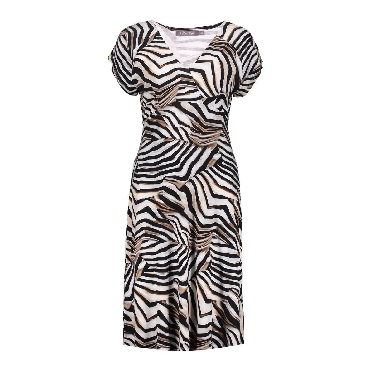 Upgrade je garderobe met deze prachtige ecru dessin geisha damesjurk! Deze trendy midi jurk is perfect voor elke gelegenheid, van een lunchafspraak tot een avondje uit. Gemaakt van hoogwaardige materialen, waaronder 95% viscose en 5% elastaan, biedt deze jurk het perfecte evenwicht tussen comfort en stijl. De ecru dessin print is subtiel en toch opvallend, en zal zeker wat extra flair toevoegen aan je outfit. Met de flatterende lengte van de midi en de mooie pasvorm zal deze jurk zeker je figuur accentueren. Dus waar wacht je nog op? Voeg deze prachtige Geisha damesjurk toe aan je collectie en maak een statement met je stijl!