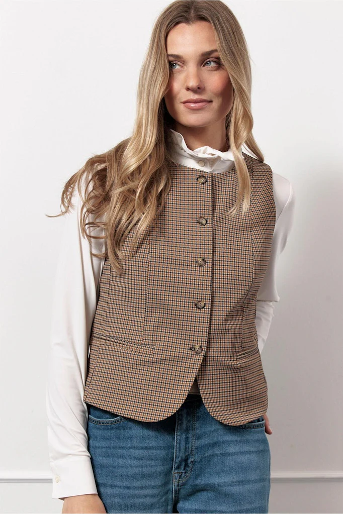 Dit prachtige bruin dessin kleurige vest van het merk Studio Anneloes is een must-have voor de modieuze vrouw. Het vest is gebreid en heeft een heerlijk zachte stof. Het is gemaakt van 74% polyamide en 26% elastaan, wat zorgt voor een comfortabele en stretchy pasvorm. Het vest is perfect te combineren met zowel een casual als een meer geklede outfit. Draag het bijvoorbeeld over een basic top en jeans voor een casual look of combineer het met een elegante blouse en rok voor een meer stijlvolle uitstraling. Met dit vest voeg je direct wat extra warmte en stijl toe aan je garderobe. Bestel het nu bij NummerZestien en ervaar het zelf!
