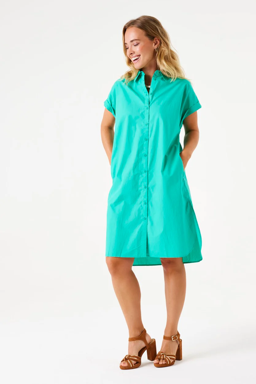 Deze prachtige groene midi jurk van het merk Garage Women is dé perfecte aanvulling op je zomergarderobe. Gemaakt van 100% katoen, zorgt deze jurk voor ultiem comfort en ademend vermogen tijdens de warmere dagen. De jurk valt tot net over de knieën en heeft een elegante en vrouwelijke pasvorm. De jurk is voorzien van korte mouwen en een V-hals, wat zorgt voor een speelse en zomerse look. De groene kleur geeft de jurk een frisse en natuurlijke uitstraling, perfect voor een dagje op het terras of een zomers feestje. Shop nu deze stijlvolle en duurzame jurk bij NummerZestien en voeg een vleugje groen toe aan je garderobe!