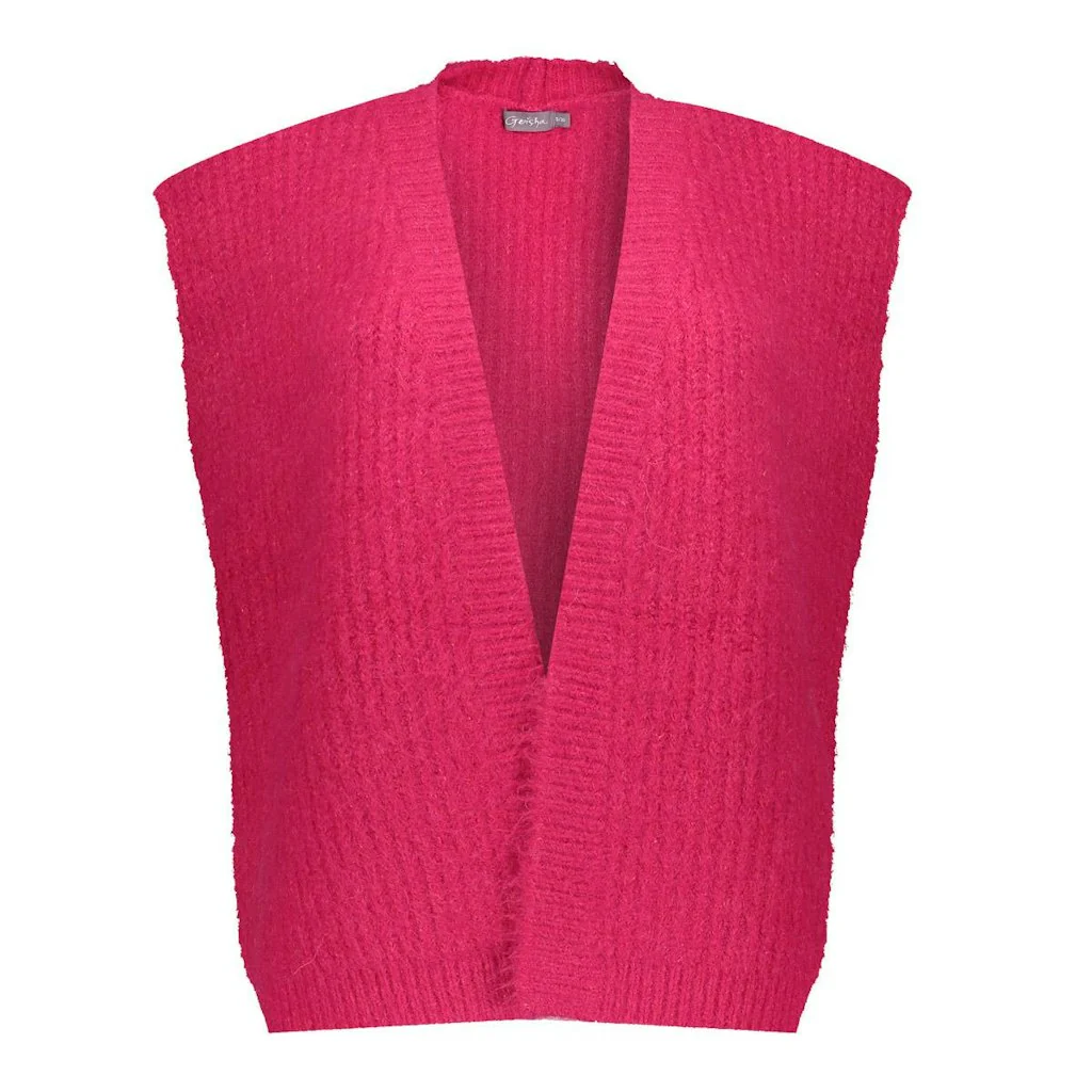 De fuchsia kleurige gilet gebreid van Geisha Dames is een stijlvol en duurzaam kledingstuk voor iedere vrouw. De gilet is gemaakt van hoogwaardige materialen, waaronder maar liefst 49% gerecycled polyester. Deze keuze voor duurzame materialen is niet alleen goed voor het milieu, maar zorgt ook voor een lange levensduur van het kledingstuk. Naast het gerecyclede polyester bestaat de gilet uit 21% polyester, 15% nylon, 8% acrylic, 5% wol en 1% spanex. Dit zorgt voor een comfortabel en warm draagcomfort. De gilet is perfect te combineren met verschillende outfits en zorgt voor een nonchalante en trendy look. Bestel nu deze prachtige gilet van Geisha Dames en voeg een uniek en duurzaam item toe aan jouw garderobe!
