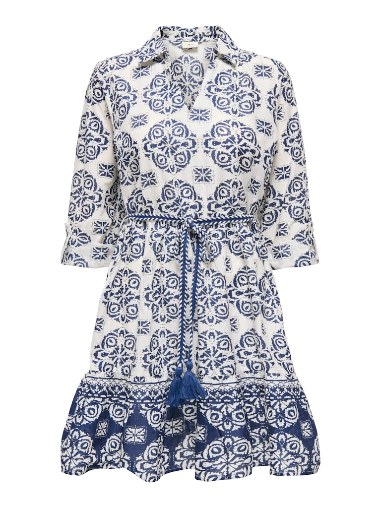 Deze prachtige korte damesjurk in het blauwe dessin van het merk Jacqueline de Yong zal zeker een favoriet worden in jouw garderobe! Gemaakt van een combinatie van 80% viscose en 20% linnen, is deze jurk niet alleen stijlvol, maar ook comfortabel om te dragen. Het dessin van de jurk geeft een speels en vrolijk effect, perfect voor een zomerse dag of een feestelijke gelegenheid. De jurk heeft een flatterende pasvorm en valt net boven de knie, met een mooie ronde halslijn en korte mouwen. Combineer deze jurk met een slippertje en een zonnebril voor een zomerse look, of draag het met een paar hakken en sieraden voor een chique avondoutfit. Bestel deze prachtige blauwe dessin jurk nu bij nummerzestien en voeg een vleugje vrolijkheid en stijl toe aan jouw kledingkast!