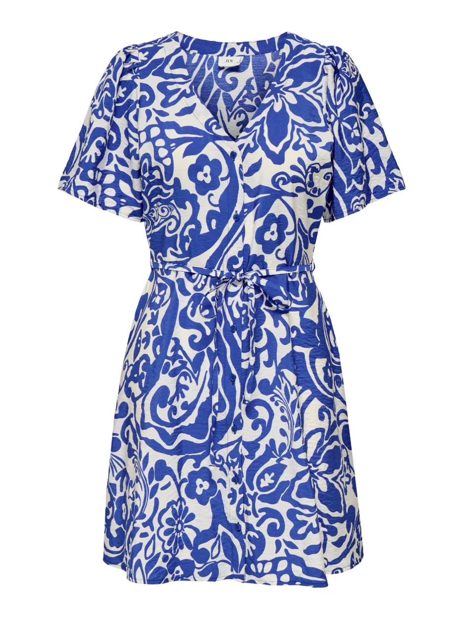 Deze prachtige blauw dessin jurk van het merk Jacqueline de Yong is een must-have voor elke dame. De korte jurk is gemaakt van een mix van 83% viscose en 17% gerecycled nylon, wat zorgt voor een comfortabele en duurzame look. De dessin print in het blauw geeft de jurk een speels en trendy karakter. Perfect voor zowel een casual als een formele gelegenheid. Draag de jurk met een paar sneakers voor een trendy look of met hakken voor een elegant effect. Bestel deze duurzame en stijlvolle jurk van Jacqueline de Yong nu bij NummerZestien en voeg een uniek item toe aan je kledingkast!