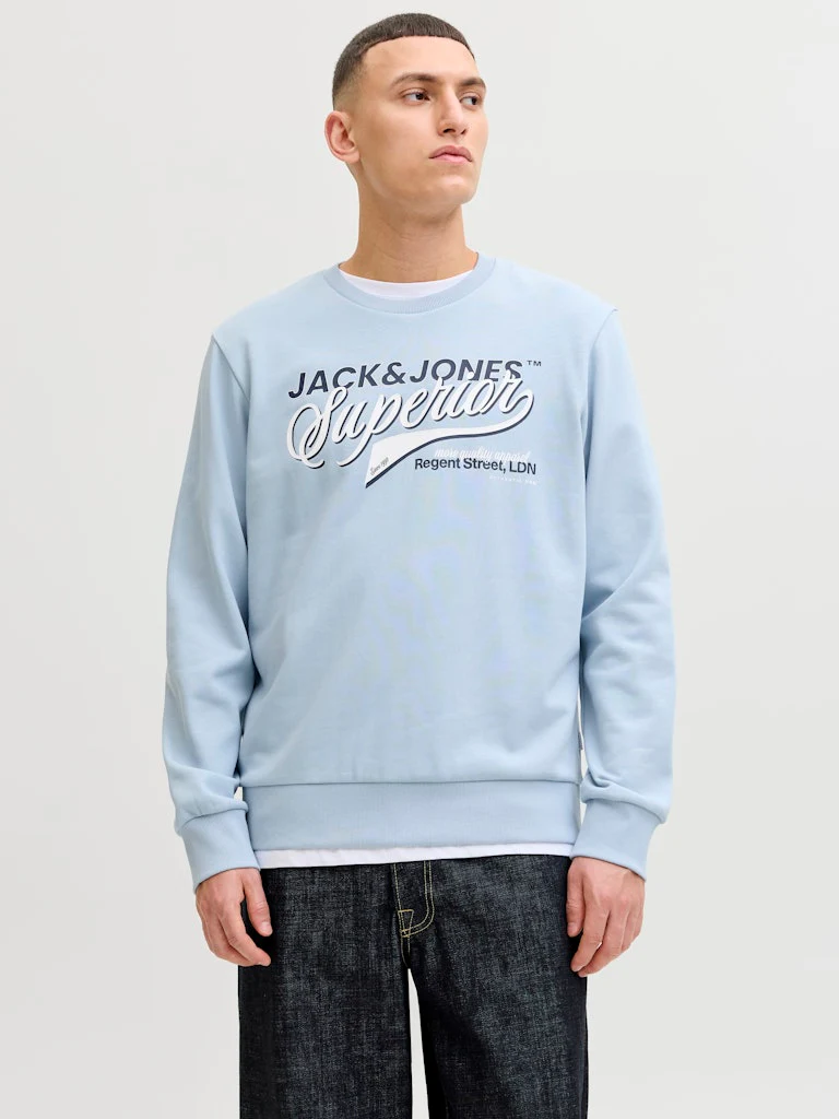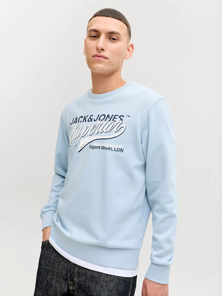 Upgrade je kledingcollectie met deze trendy lichtblauwe heren sweater van Jack & Jones, verkrijgbaar bij NummerZestien! Gemaakt van een mix van 50% biologisch katoen en 30% gerecycled polyester, voelt deze sweater niet alleen heerlijk zacht aan, maar is hij ook nog eens duurzaam geproduceerd. De overige 20% katoen zorgt voor een comfortabele pasvorm. Met zijn klassieke ronde hals en subtiele Jack & Jones logo op de borst, is deze sweater de perfecte aanvulling op elke casual outfit. De lichtblauwe kleur geeft een frisse en stijlvolle uitstraling. Bestel nu deze must-have sweater bij NummerZestien en maak een statement in duurzame mode!