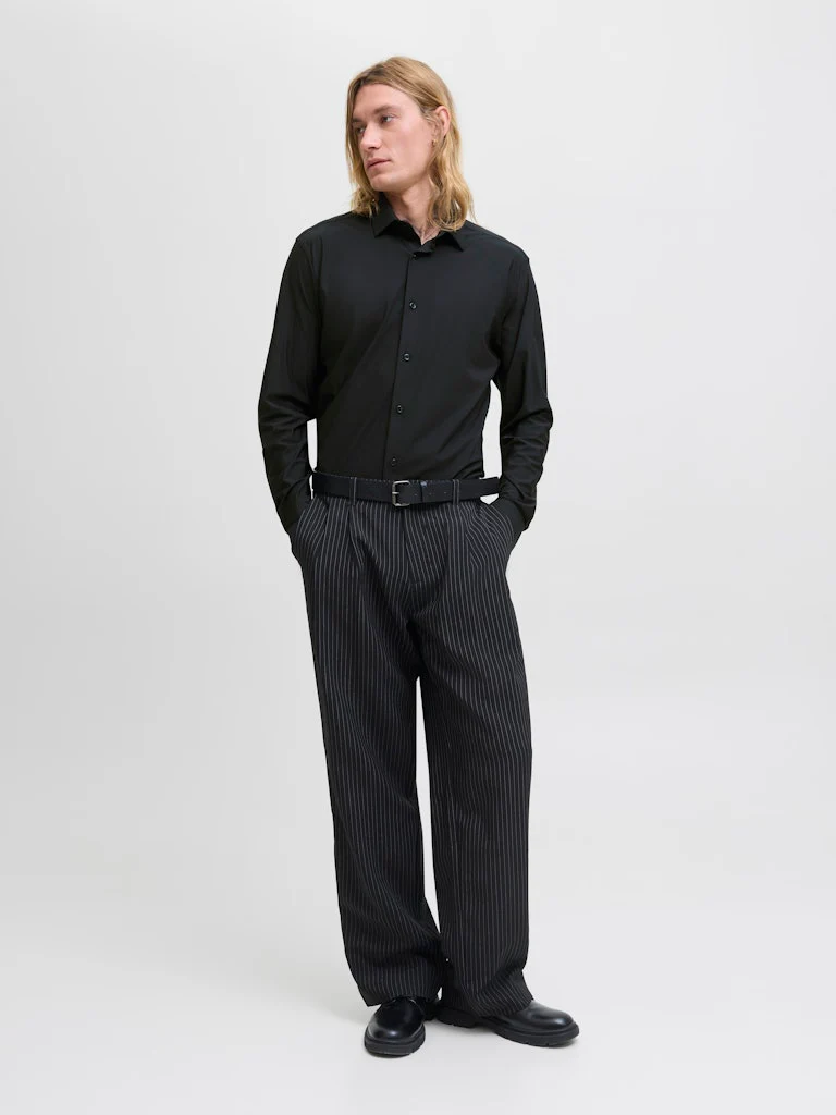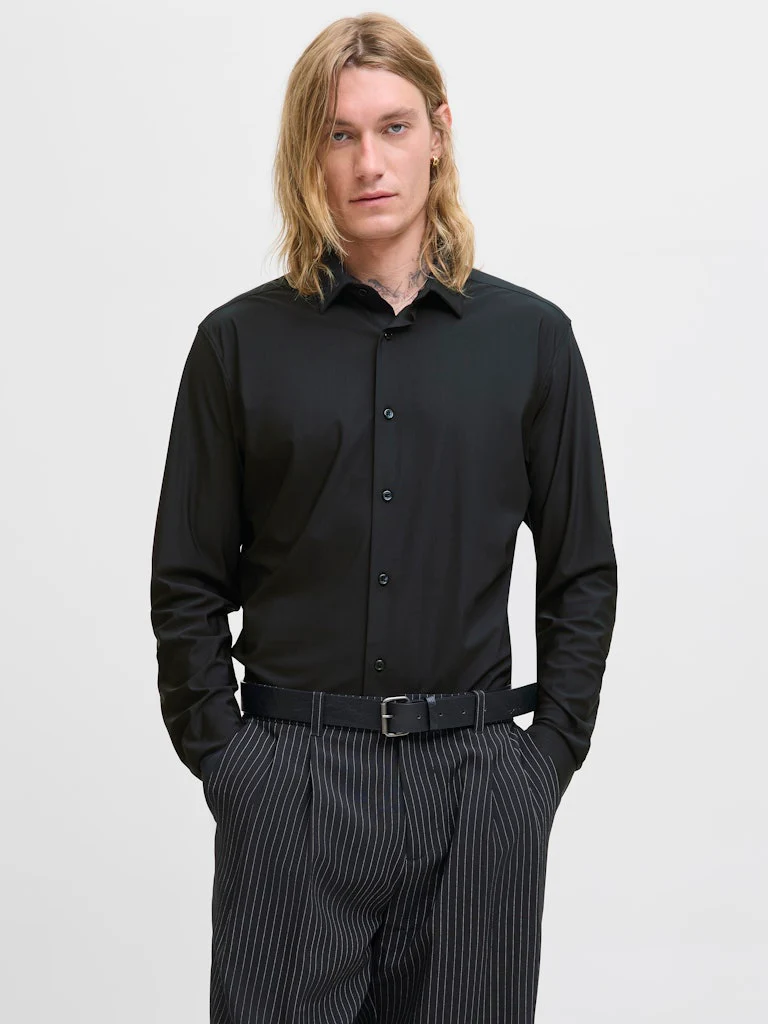 Dit stijlvolle zwarte overhemd van Jack & Jones is perfect voor elke gelegenheid. Het is gemaakt van hoogwaardig polyester en elastaan, wat zorgt voor een comfortabele en flexibele pasvorm. De lange mouwen maken het geschikt voor zowel casual als formele gelegenheden. Het overhemd is afgewerkt met een klassieke kraag en knoopsluiting, waardoor het een tijdloze toevoeging is aan je garderobe. Laat jezelf stralen in dit modieuze en veelzijdige overhemd van nummerzestien! Shop nu en ben klaar voor elke gelegenheid.