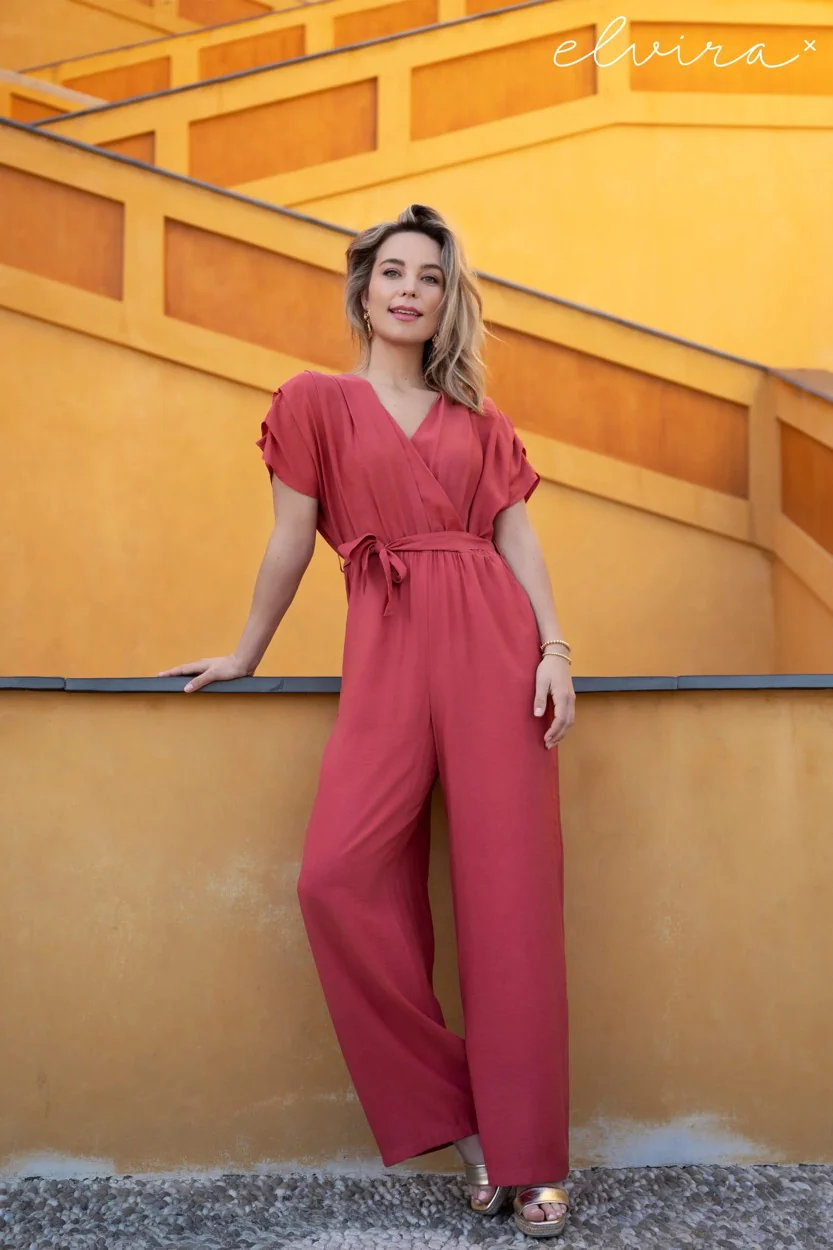 Ga voor comfort, stijl en een vleugje kleur met de Elvira Casuals jumpsuit l/p dames in koraal rood. Bestel hem nu in onze webshop en voeg deze must-have toe aan je garderobe!