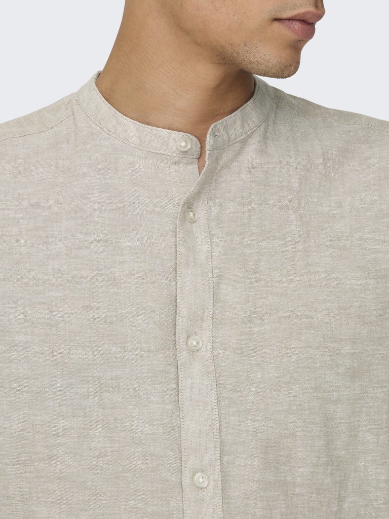 Dit beige overhemd van Only & Sons is een must-have voor elke man! Het overhemd is gemaakt van 45% linnen, 35% katoen en 20% gerecycled katoen, waardoor het niet alleen duurzaam is, maar ook heerlijk zacht en ademend aanvoelt. Dit overhemd heeft lange mouwen, waardoor het perfect is voor alle seizoenen. De stof heeft een lichte structuur en een mooie glans, wat zorgt voor een elegante en stijlvolle uitstraling. Het overhemd heeft een moderne slim fit pasvorm, waardoor het mooi aansluit op je lichaam en je figuur accentueert. Of je het nu casual draagt met een spijkerbroek of netjes met een pantalon, dit overhemd is geschikt voor elke gelegenheid. Voeg dit beige overhemd van Only & Sons toe aan je kledingcollectie en creëer eindeloos veel stijlvolle outfits!