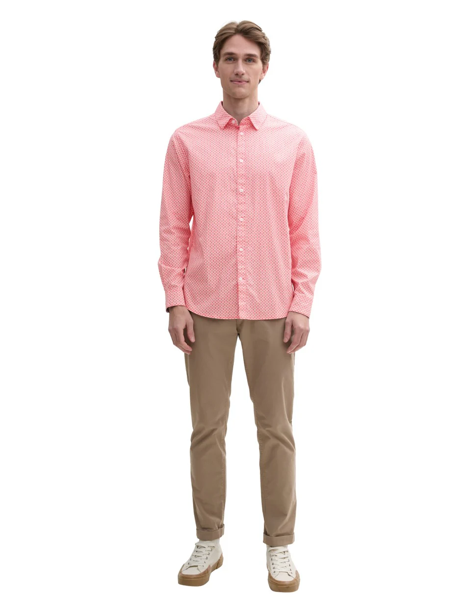 Het Tom Tailor overhemd voor heren is een absolute must-have voor elke moderne en stijlvolle man. Dit overhemd is uitgevoerd in een opvallende rode kleur met een uniek dessin, waardoor je zeker de show steelt. De van 97% katoen en 3% elastaan gemaakte stof garandeert een comfortabele pasvorm en geeft het overhemd een lichte stretch. Hierdoor is het perfect voor elke gelegenheid, of het nu op kantoor is of tijdens een avondje uit. Combineer dit overhemd met een jeans voor een casual look of met een pantalon voor een meer formele outfit. Bestel nu dit prachtige Tom Tailor overhemd en voeg een vleugje elegantie toe aan je garderobe!