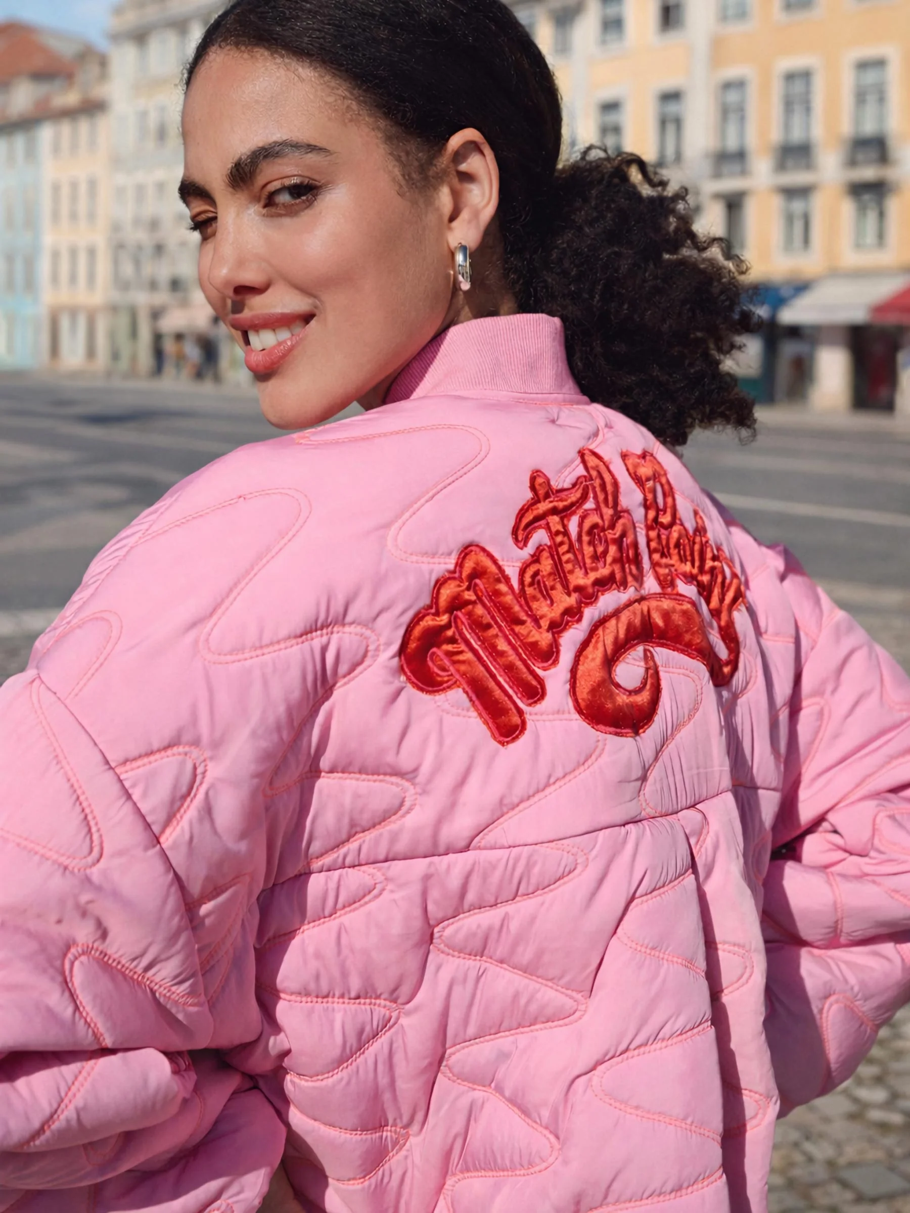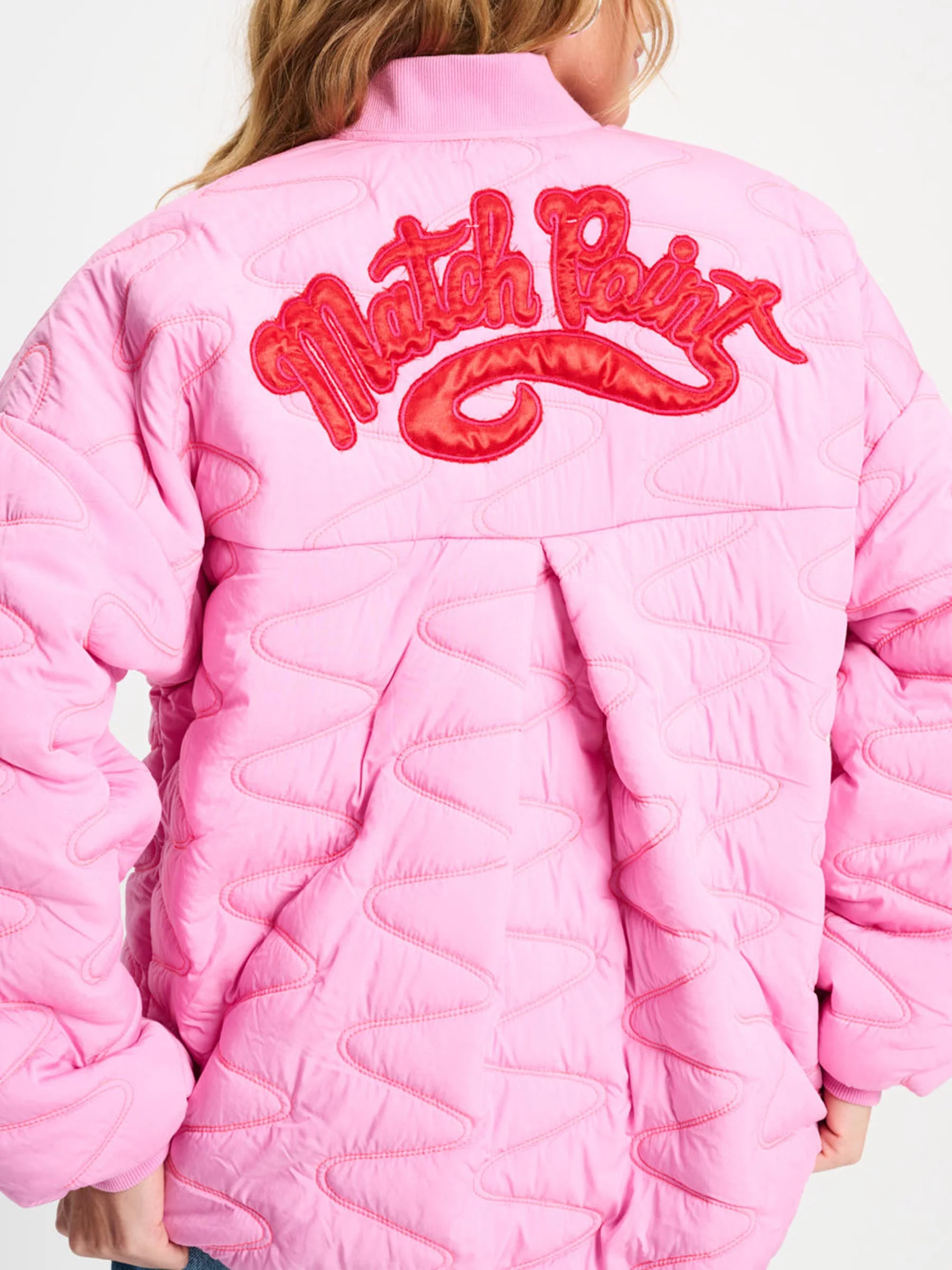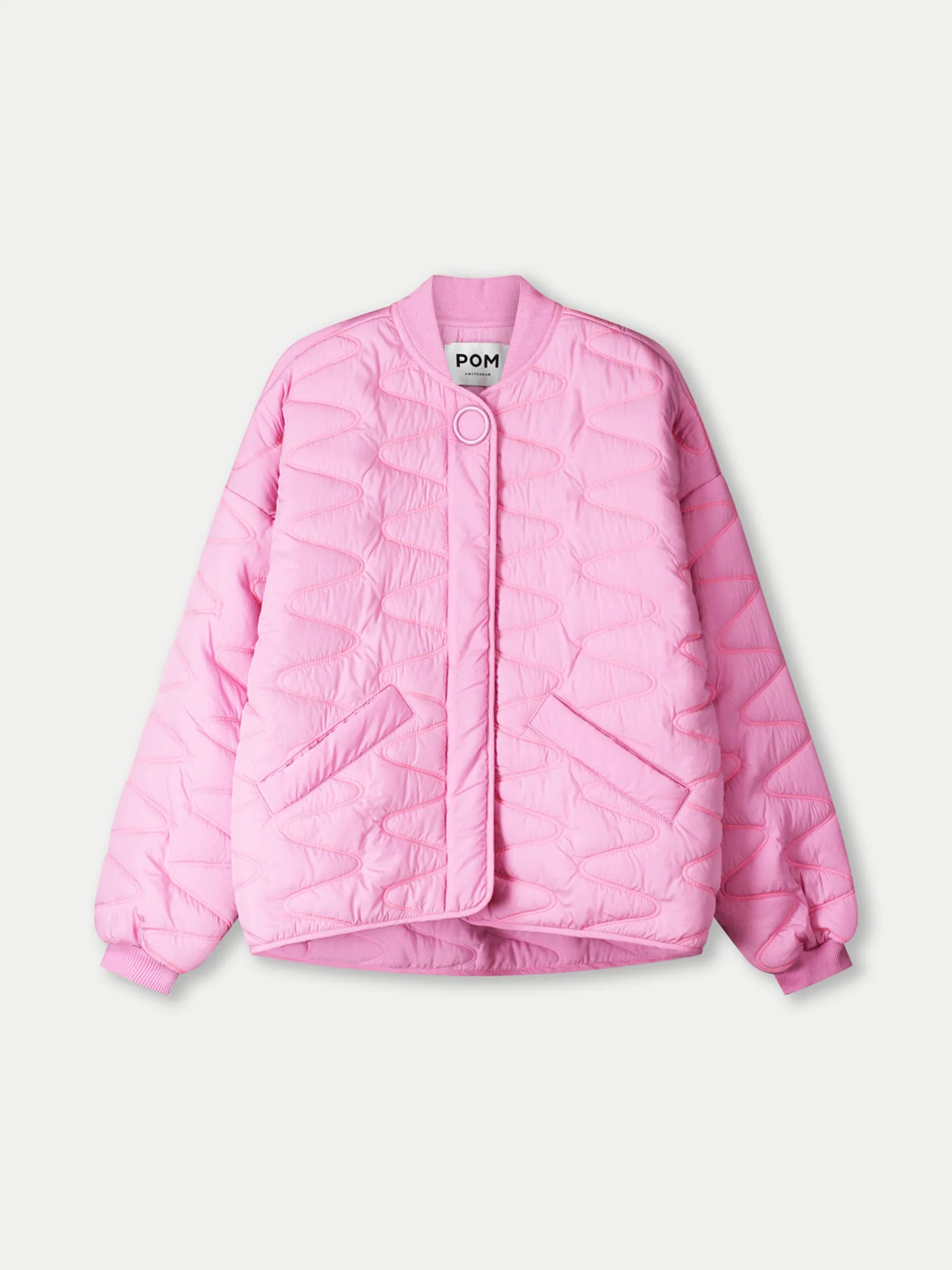 Deze roze jas van POM Amsterdam is een echte blikvanger die elke outfit meteen opfrist. Het bombermodel met opvallende zigzag stiksels en artwork op de rug geeft een sportieve en stoere uitstraling. Perfect als statement jas voor frisse dagen.