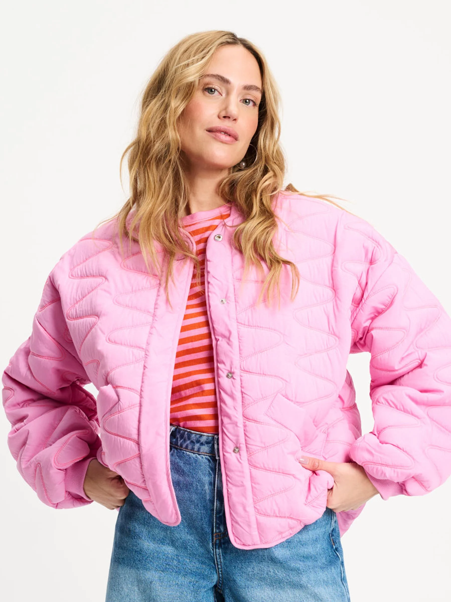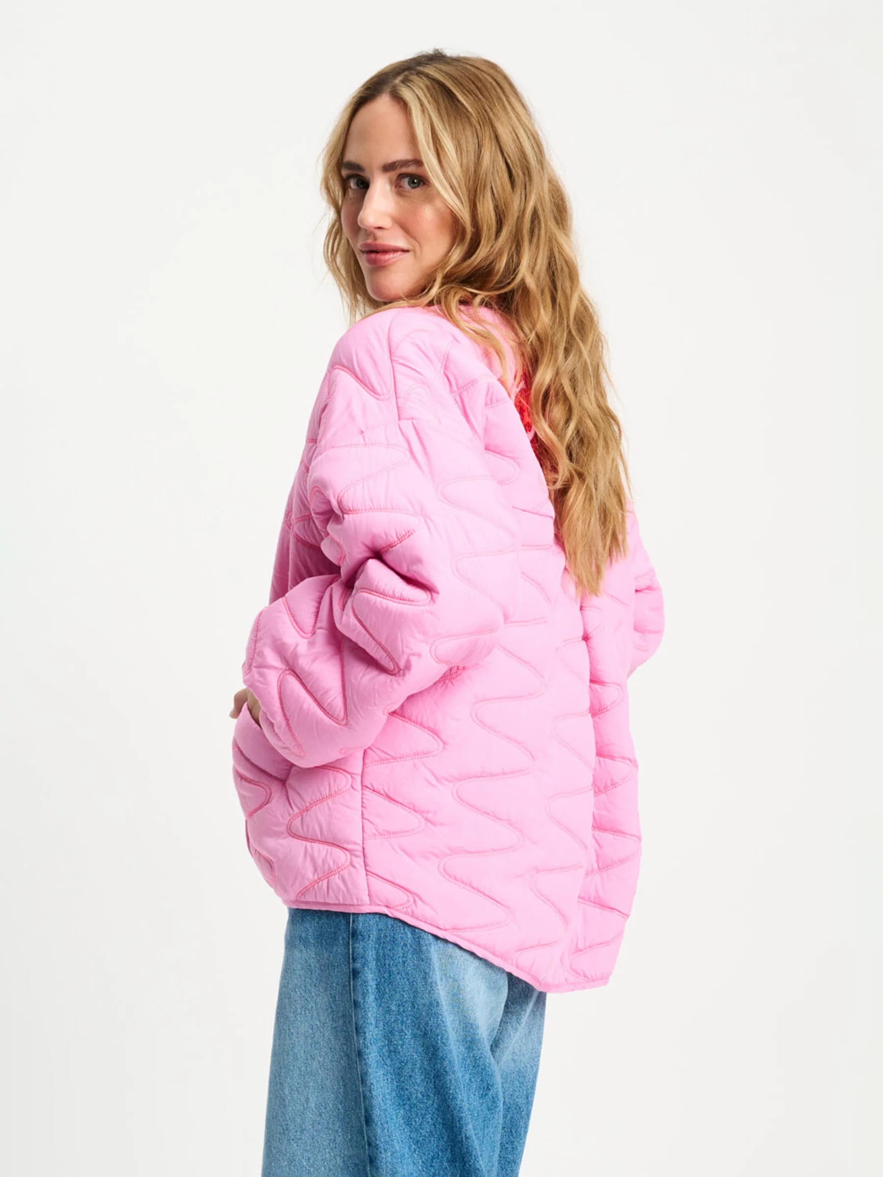• Roze gewatteerde jas