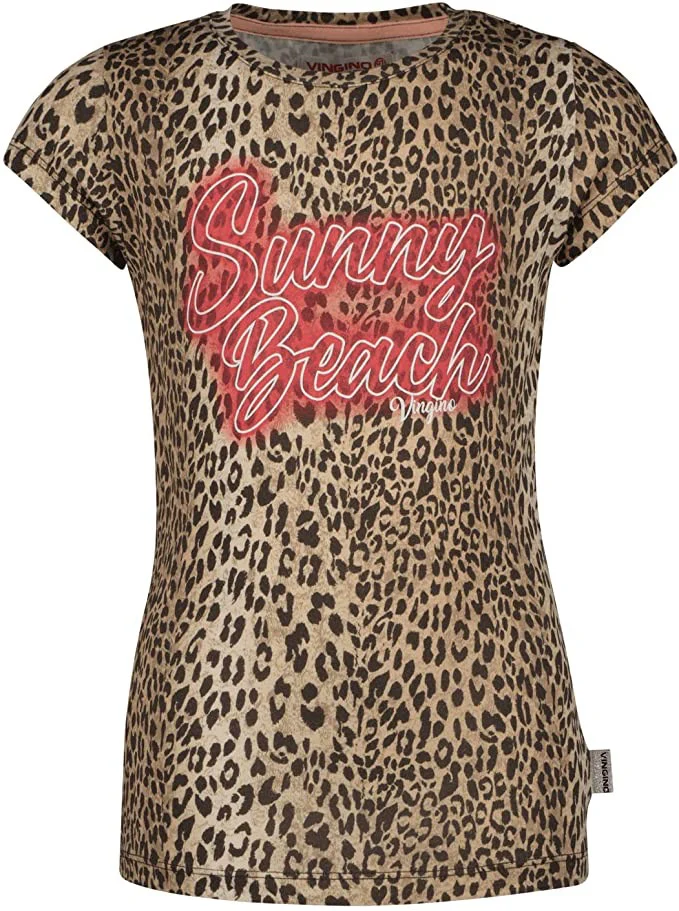 Dit prachtige Vingino meisjes t-shirt is perfect voor stoere kleine meiden! Het t-shirt heeft een mooi bruin dessin met een trendy panterprint en opvallende tekstprint aan de voorkant. Het shirt heeft een comfortabele pasvorm en is voorzien van korte mouwen en een ronde hals. Gemaakt van hoogwaardig materiaal, bestaande uit 95% katoen en 5% elastaan, zodat jouw dochter heerlijk kan spelen en bewegen. Dit t-shirt is een must-have voor de kledingkast van iedere modebewuste meid. Shop nu dit geweldige Vingino t-shirt en maak de outfit van jouw meisje helemaal compleet!