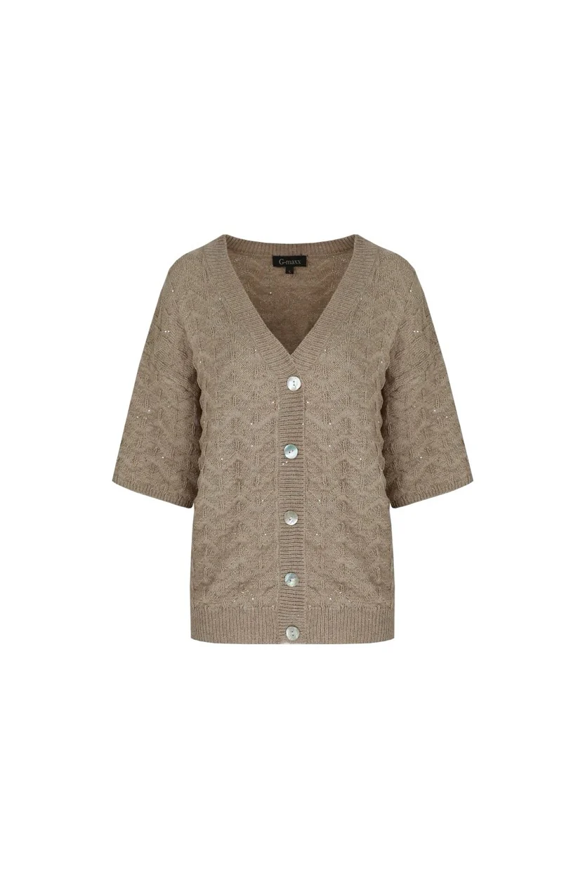 Ga stijlvol de winter in met dit prachtige taupe kleurige gebreide damesvest van het merk G-Maxx. Gemaakt van een mix van 55% katoen, 42% polyamide en 3% elastaan, voelt dit vest heerlijk zacht en comfortabel aan. Het gebreide patroon geeft het vest een luxe uitstraling en de taupe kleur is veelzijdig en eenvoudig te combineren.