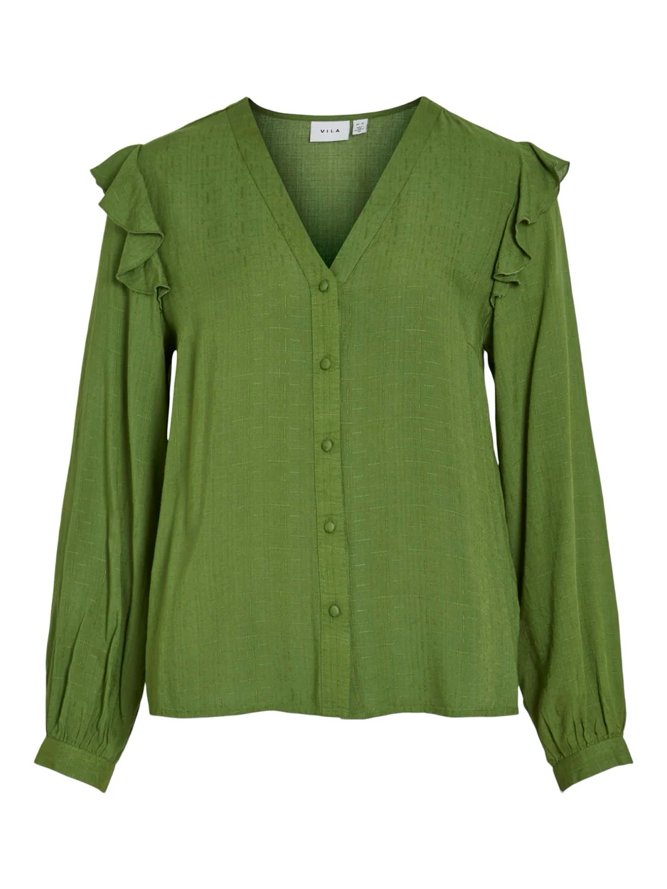 Deze verfrissende groene blouse van Vila is een must-have voor elke trendy dame. Gemaakt van 100% viscose, voelt de blouse heerlijk zacht en licht aan. De lange mouwen maken het perfect voor elk seizoen en de elegante pasvorm accentueert jouw vrouwelijke silhouet op de juiste manier. Een echte eyecatcher door de prachtige groene kleur, die jouw outfit een vleugje frisheid en klasse geeft. Deze blouse is ideaal voor zowel zakelijke als casual gelegenheden en is een aanvulling op elke garderobe. Combineer het met een stoere jeans en sneakers voor een casual look of draag het met een zwarte pantalon en pumps voor een chique uitstraling. Duurzaamheid is niet alleen belangrijk, maar ook modieus en deze blouse van Vila bewijst het. Bestel nu en laat jouw bewuste kant zien met deze trendy groene blouse van Nummerzestien.
