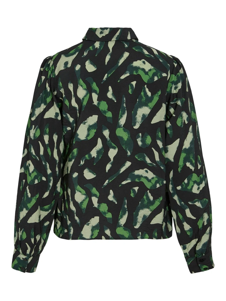 Deze prachtige blouse/lange mouwen voor dames van het merk Vila is perfect voor elke gelegenheid. Het groen dessin geeft de blouse een frisse en trendy look. Gemaakt van een heerlijk zachte mix van 82% viscose en 18% polyamide, waardoor de blouse comfortabel draagt en mooi valt. De blouse heeft een V-hals en een knoopsluiting aan de voorkant. Draag hem op een mooie jeans voor een casual look of combineer het met een rok voor een chique uitstraling. Een must-have voor elke kledingkast! Bestel deze prachtige blouse nu bij NummerZestien.