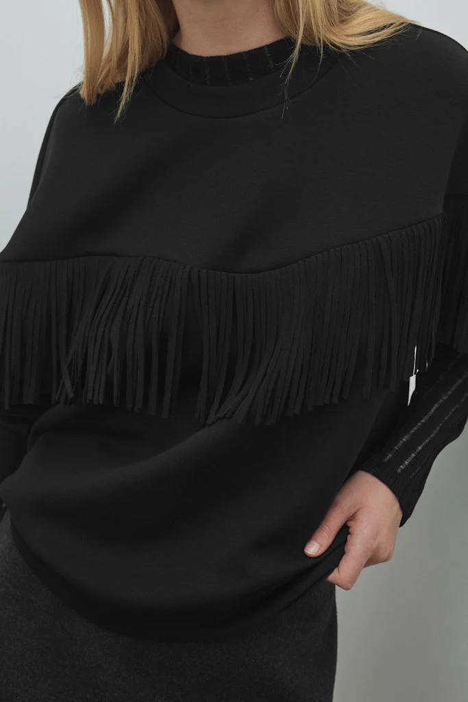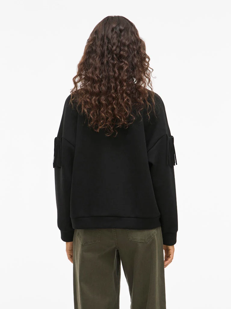 Deze zwarte sweater voor dames van het bekende merk Vila is niet alleen stijlvol, maar ook nog eens duurzaam. Gemaakt van 50% gerecycled polyester, 23% polyester, 22% viscose en 5% elastaan, is deze sweater niet alleen comfortabel, maar ook nog eens goed voor het milieu. Het zachte materiaal valt soepel om het lichaam en zorgt voor een fijne pasvorm. De sweater is voorzien van een ronde hals en heeft lange mouwen, waardoor hij perfect is voor de koudere dagen. Combineer deze sweater met een jeans en sneakers voor een casual look, of draag hem met een rok en laarsjes voor een meer geklede uitstraling. Met deze sweater ben jij klaar om de show te stelen, terwijl je ook nog eens bijdraagt aan een duurzamere wereld. Bestel hem nu bij NummerZestien, dé kledingwebshop voor de modebewuste vrouw.
