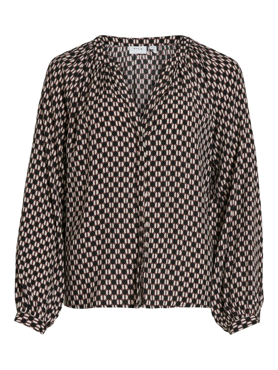 Deze trendy top van het merk Vila is de perfecte toevoeging aan jouw garderobe! De top is uitgevoerd in een stijlvol zwart dessin en heeft lange mouwen, waardoor hij zowel in het voor- als najaar gedragen kan worden. De top is gemaakt van hoogwaardig viscose, wat zorgt voor een comfortabele pasvorm en een luxe uitstraling. De lichtblouse is eenvoudig te combineren met een jeans en sneakers voor een casual look, maar kan ook gecombineerd worden met een rok en hakken voor een chique uitstraling. Kortom, een must-have item voor elke vrouw! Shop nu deze prachtige top bij NummerZestien en geef jouw outfit een stylish upgrade.
