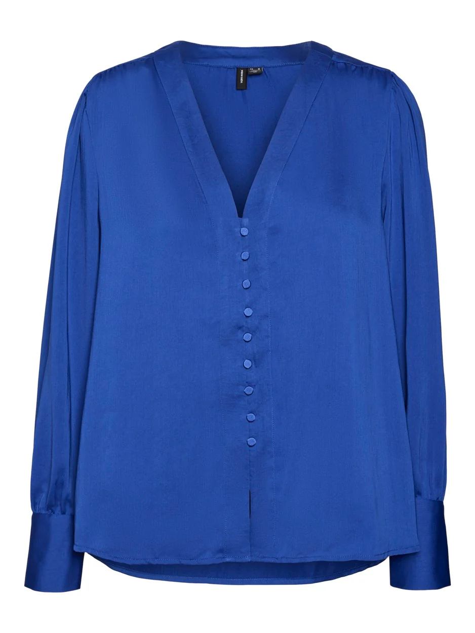 Deze stijlvolle kobaltkleurige blouse van Vero Moda is een must-have item voor elke moderne vrouw. De blouse is gemaakt van 100% polyester, waardoor hij licht en comfortabel is om te dragen. De blouse heeft lange mouwen en een elegante kraag, wat zorgt voor een klassieke uitstraling. De blouse is perfect te combineren met een mooie broek of rok voor een zakelijke look, maar is ook geschikt voor een casual outfit. De stof valt soepel en accentueert de vrouwelijke vormen op een subtiele manier. Maak jouw garderobe compleet met deze trendy blouse van Vero Moda en straal in elke gelegenheid! Bestel nu en geniet van gratis verzending bij NummerZestien.