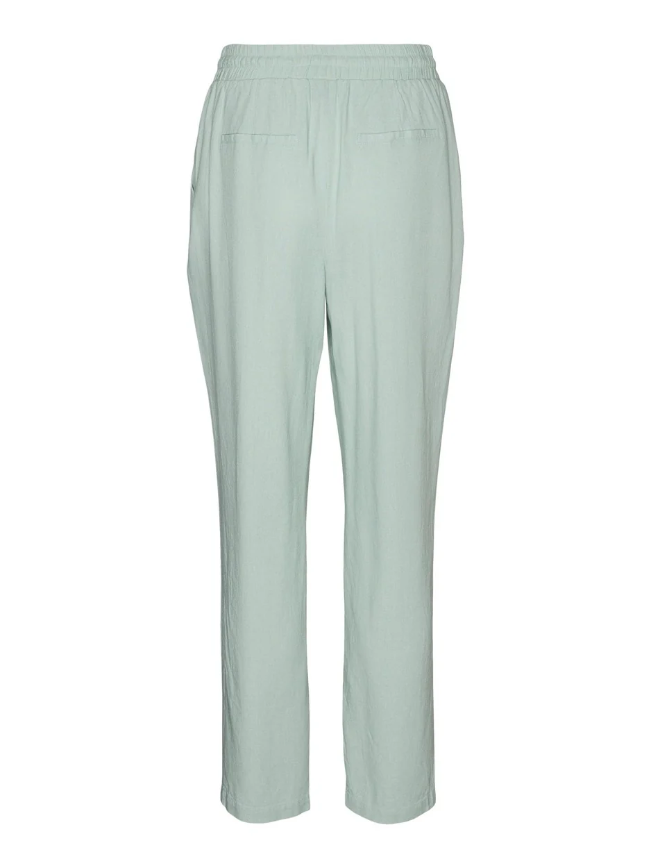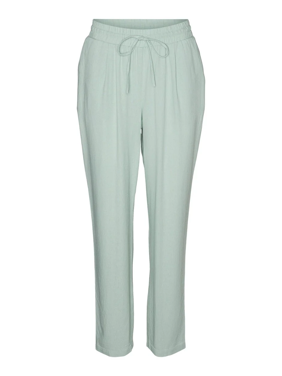 De mintkleurige 7/8 broek voor dames van Vero Moda is de perfecte toevoeging aan jouw lente- en zomergarderobe. Deze broek is gemaakt van een zachte en luchtige mix van 55% viscose en 45% linnen, waardoor hij comfortabel en ademend is op warme dagen. De 7/8 lengte geeft de broek een trendy en eigentijdse uitstraling, terwijl de trendy mintkleur ervoor zorgt dat je opvalt in de menigte. Deze broek is veelzijdig genoeg om zowel casual als chic gedragen te worden en kan gecombineerd worden met verschillende stijlen en kleuren. Bestel nu deze mooie en modieuze broek bij NummerZestien en maak je klaar voor de zonnige dagen!