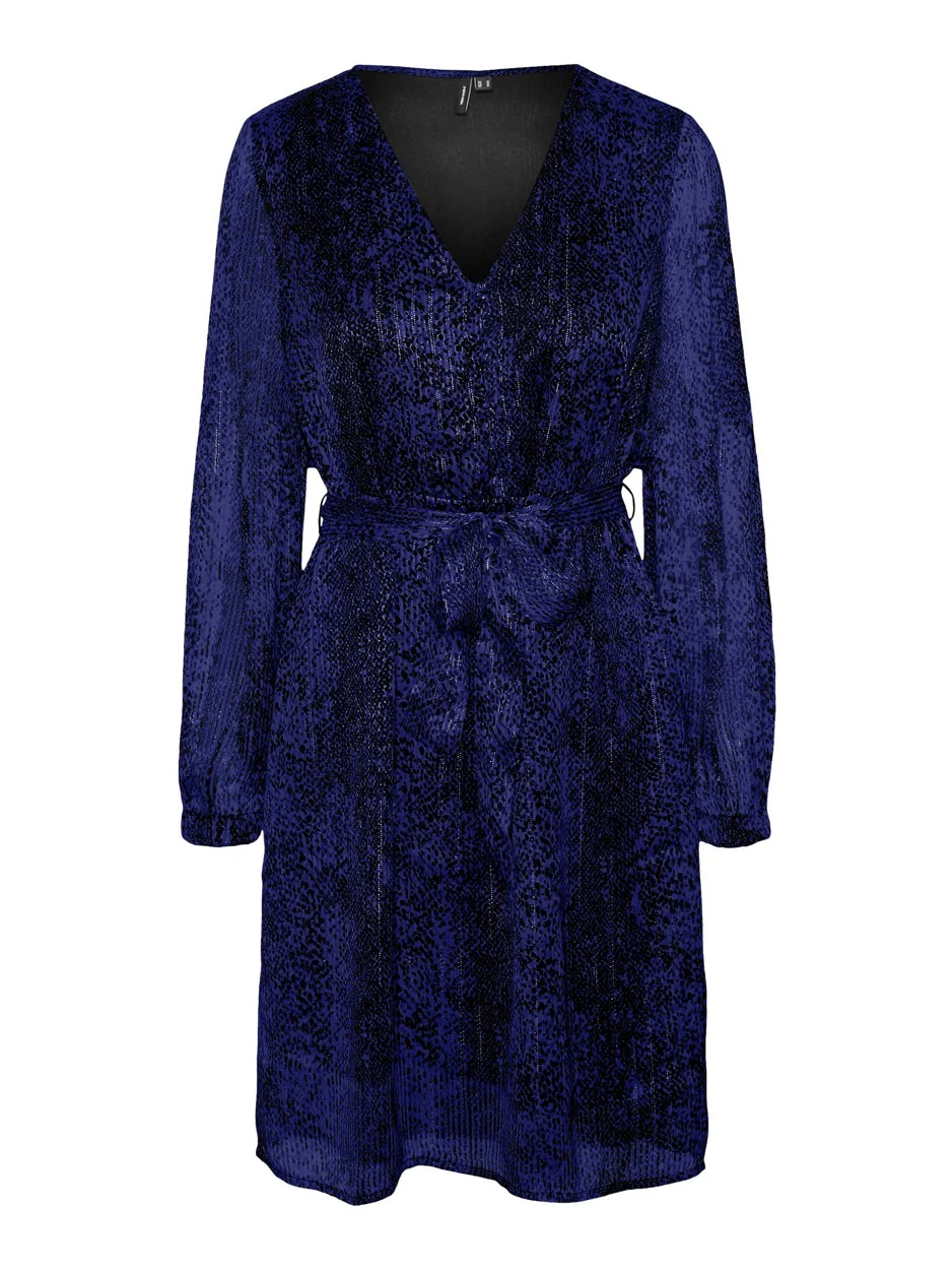 Vmnala L/s V-neck Abk Dress Wvn Btq – Blauw Dessin