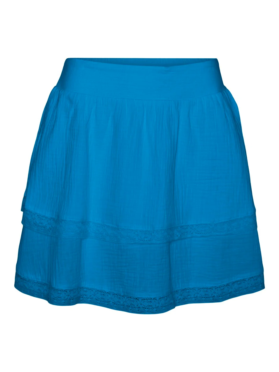 De kobalt kleurige korte damesrok van Vero Moda is een echte eyecatcher in je kledingkast. Gemaakt van 80% katoen en 20% gerecycled katoen, is deze rok niet alleen stijlvol maar ook duurzaam. De rok valt net boven de knie en heeft een elastische tailleband voor een comfortabele pasvorm. Combineer de rok met een basic top en sneakers voor een casual look, of draag hem met een blouse en hakken voor een chique uitstraling. Met deze rok ben je altijd on-trend en draag je ook nog eens bij aan een beter milieu. Bestel hem nu bij Nummerzestien en geef je garderobe een boost!
