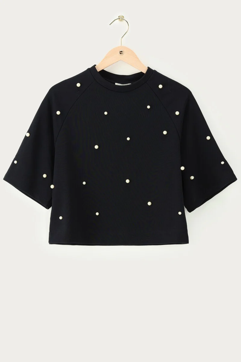 Zwarte Korte Sweater Met Imitatie Parels – Zwart