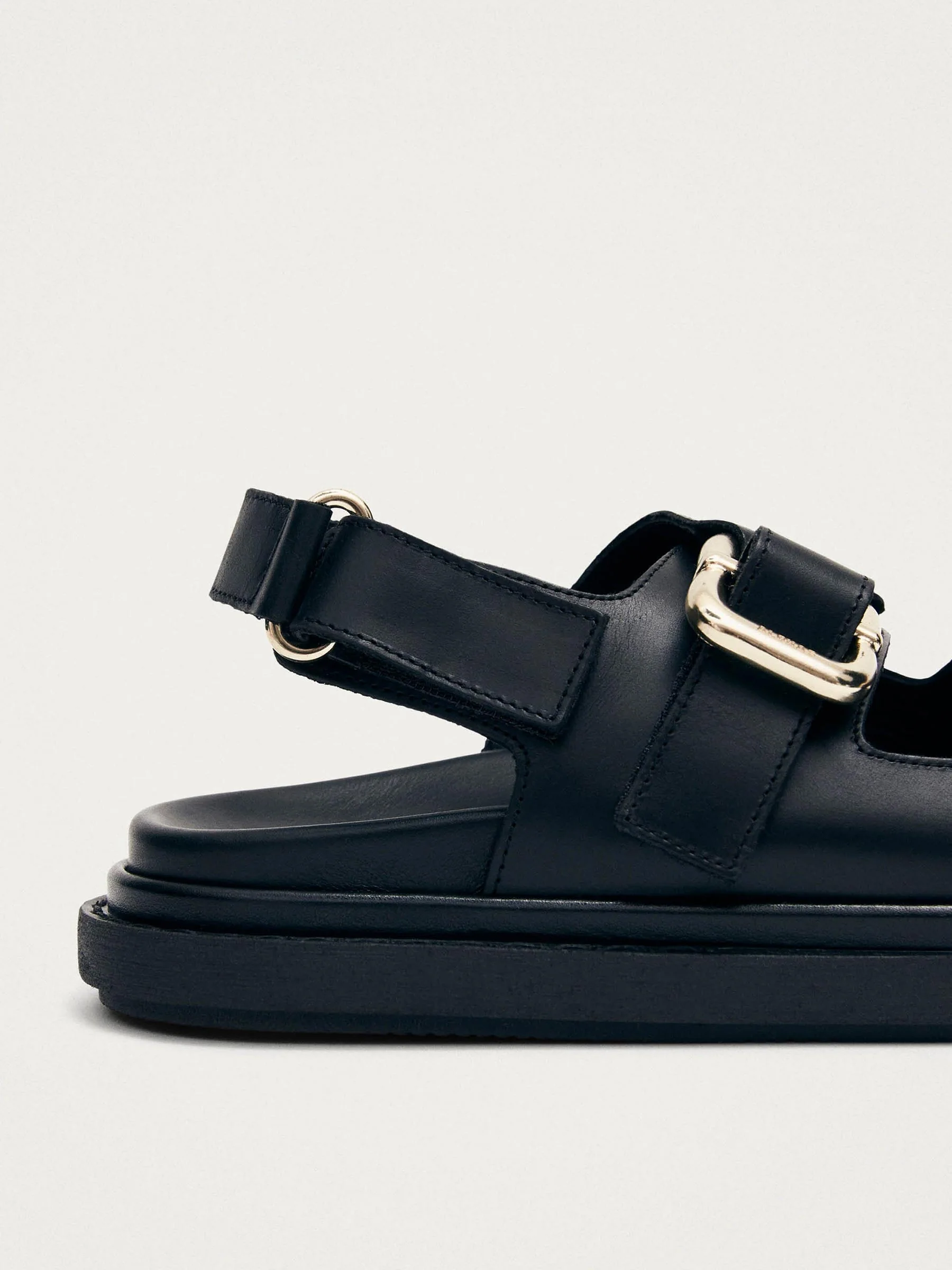 - Zwarte leren sandaal met twee banden